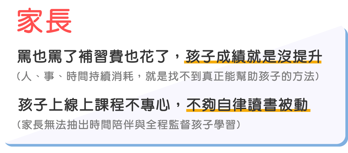 - A:由各領域專業的線上老師,透過線上的方式了解學生狀況,直接在線上解決同學問題,並且檢核學生前面觀看影片及練題的學習成效,輔助學習成效達到最好,提供統整重點與學習心法,激發孩子靈活思考與提升邏輯思維。