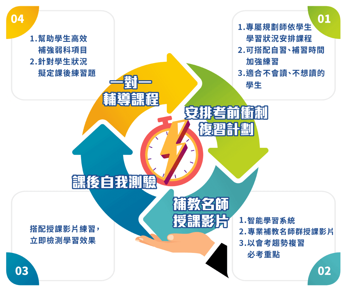 網羅全省補習班權威名師,嚴選編排教學內容,獨門智慧應考技巧在家輕鬆學!
