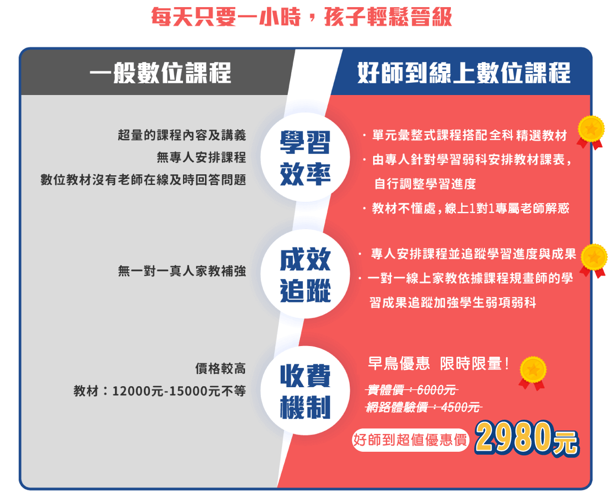 提醒:本產品聯繫方式僅於好師到雲端學苑Line@、FB提供,如有接獲不明來電或異常及不合理的情形,請多加查證並撥打1950詐騙專線
